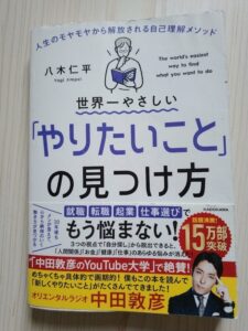 僕は「オリエンタルラジオ」の「中田敦彦」さんの「ユーチューブ大学」で「八木仁平」先生の名著『世界一やさしい「やりたいこと」の見つけ方』を解説されていたのを観て、そこから自分を知ることの面白さに気づきました!